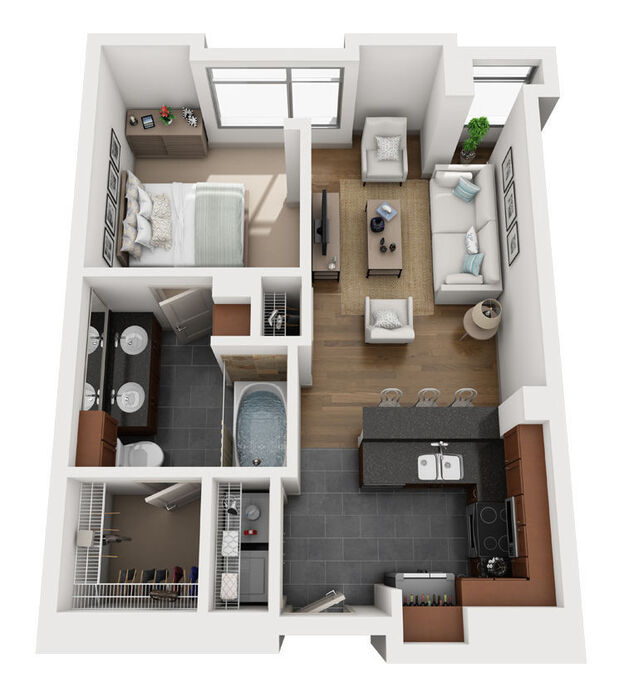 Step into a beautifully curated studio, 1 or 2 bedroom apartment at Current and experience luxury living that is perfectly built into your lifestyle. Immerse yourself in a stylish floor plan that boasts a sophisticated, timeless design with hardwood and slate flooring, granite countertops and tile backsplashes. Floor-to-ceiling windows frame fantastic views of downtown San Diego while access to a private balcony or wrap-around terrace in select apartments allow you to dine alfresco and enjoy the cool breeze. Live efficiently with an attached storage area, a spacious pantry, an in-home washer and dryer set and large walk-in closets. Working from home has never been easier with a built-in desk, built-in bookcase and a den or office area in some homes. To learn more about current availability and apartment features, call the leasing office today!